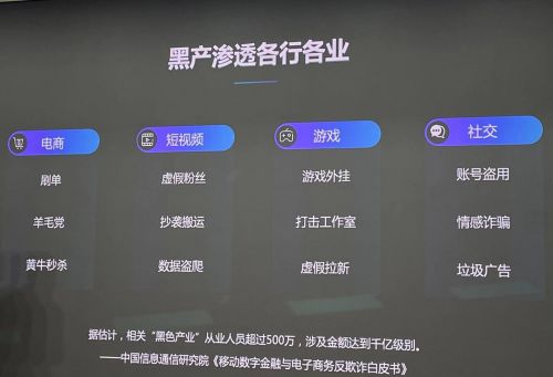 正如上文所提到的,灰黑产在行业里已经形成利益链条,受利益驱使,会不断变换方式,逃避平台查处。中国信息通信研究院发布的《移动数字金融和电子商务反欺诈白皮书》显示,据估计,相关“黑色产业”的从业人员超过500万,涉及金额达到千亿级别。要打击网络黑灰产,仅靠平台之力,很难实现。