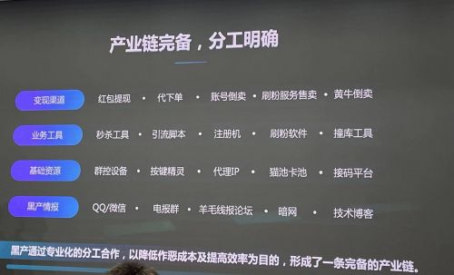 除此之外,张曦盛表示抖音安全中心目前也组建了红蓝军攻防团队,开展黑灰产的行业研究,希望先于犯罪分子发现黑灰产行业最新趋势。