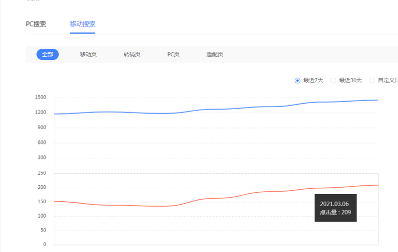 PC端的大概五六十,移动端的小两百,这还是百度的,搜狗每天也有七八十个流量,还有360的,流量有了,做啥子呢?难道去挂网萌么??