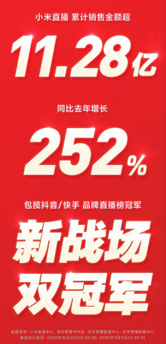 今年是小米的第8次双十一,也是最为特殊的一次。我们亲历了,消费需求在长期抑制后迎来大爆发;我们取得了,开启新十年征程后电商战场的首场大捷;我们更有力地证明了,无论世界存在多少不确定性,小米人都能把成功变成一件确定的事。