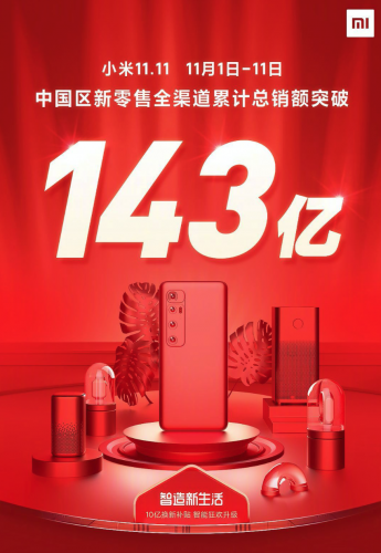 【6cu.com】双11落幕,小米双11最终战报也随之出炉。根据小米官方公布的数据,11月1日-11日,中国区新零售全渠道累计总销额突破143亿!