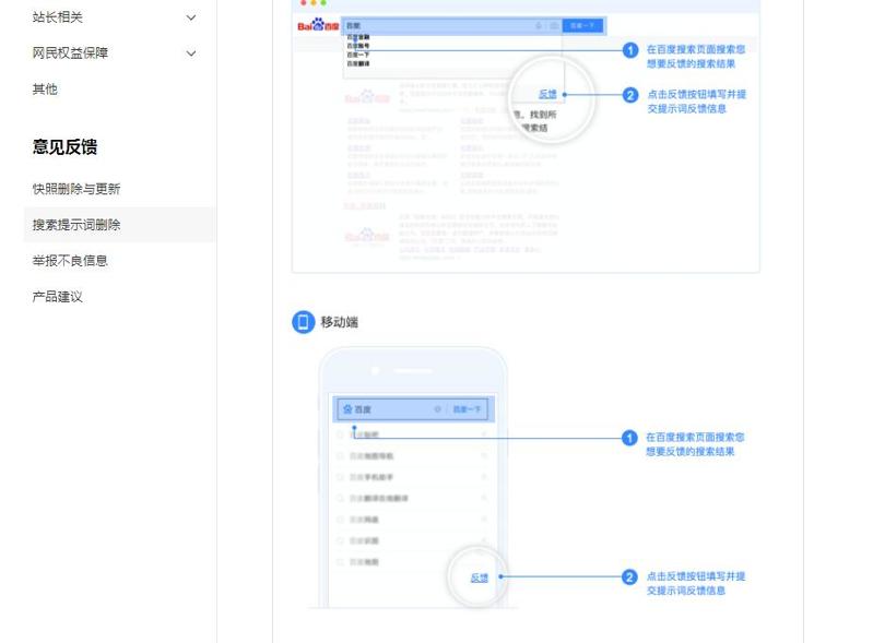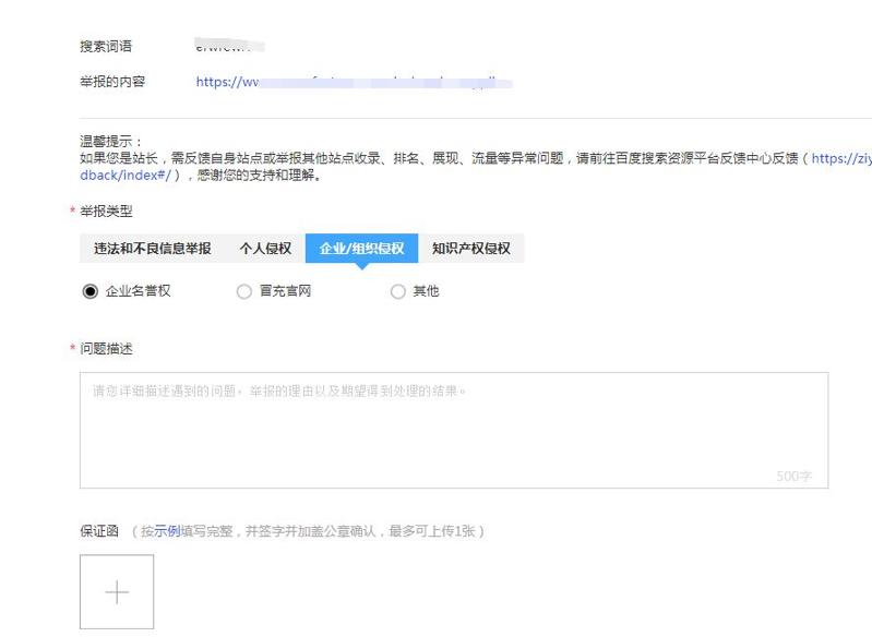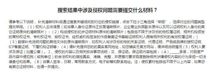 3、企业投诉侵权,找到对应的URL,就有举报的渠道,百度反馈也有官方的文件说明。