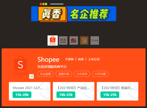 同时,在2021届互联网名企校园招聘专场,拉勾为2021届毕业生们整合了年度人气大厂、秋招必投名企、真香名企推荐、宝藏名企精选四大版块校招职位,涵盖字节跳动、美团点评、网易、快手、滴滴、虎扑等30余家互联网头部企业。