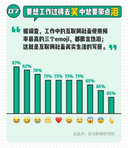 从打字时间上看,市场人喜提“熬夜冠军”。即便是凌晨2点48分,仍有市场人忙着下brief。“好的”是互联网人最经常输入的词汇,“笑中有泪”的emoji是他们最爱使用的表情。