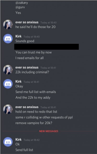 昵称叫“lol”的黑客和另一个与他一起工作的人(昵称“ever so anxious”)说,他们想聊聊自己和Kirk一起做的事情,来证明他们只是在当天早些时候协助购买和控制鲜为人知的Twitter账户。下午3点半左右,Kirk发起更声势浩大的攻击时,他们没有继续参与。