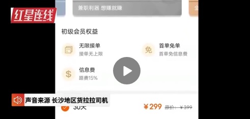 从红星新闻的视频中能看到,如果这位司机不充会员,那么每一单所赚的钱会被抽成 15%。