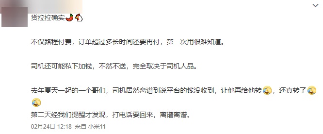 小雷看了下网友使用货拉拉的体验来看,很多都遇到过司机私下加钱的情况。