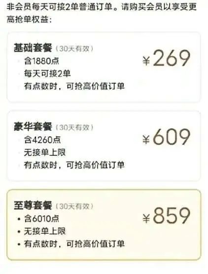 当司机开通 539 元 / 月的高级会员和 709 元 / 月的超级会员后,平台不再抽成,并且可以无限接单。
