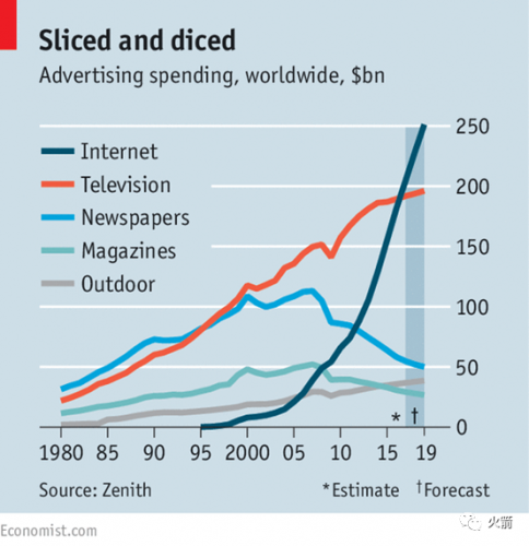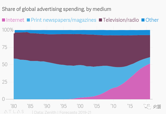 如今,在全球范围内,互联网广告已成为绝对主流,占领了整个广告产业的一半。