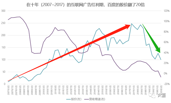 自然的,百度营收的三次增速下滑,都引起了其市值的下滑。