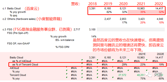 在高盛给百度整个新兴业务的15%估值里面,有12%的估值来自于百度云。