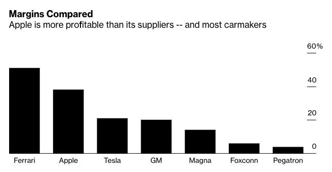 苹果的利润率远高于代工商和多数汽车厂商