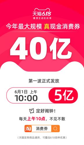 原标题:今天上午10点 天猫618的40亿消费券第一波开领