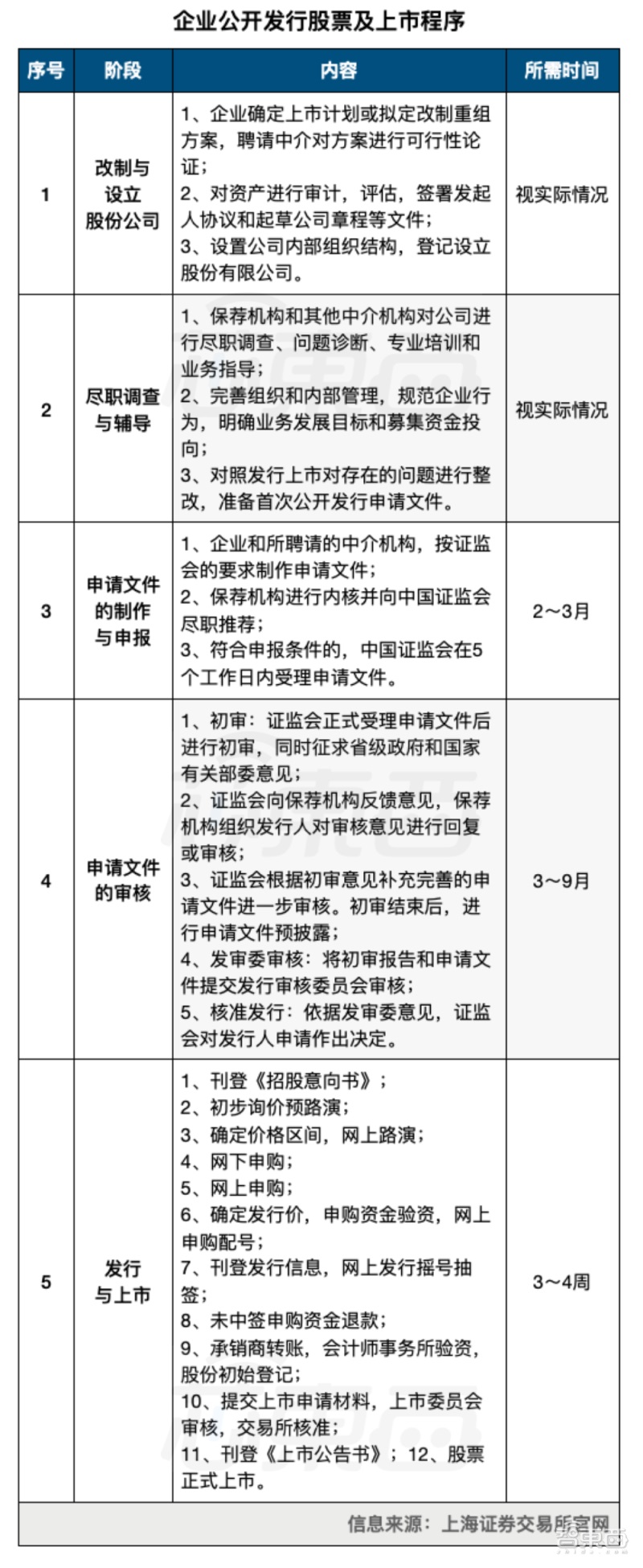 ▲企业 A 股发行上市程序(信息来源为上海证券交易所官网,芯东西制表)