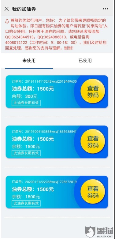 另外一位车主也投诉称,他在优驾行上购买了共计 1100 元的加油券,自 2020 年 4 月开始就无法正常使用,2020 年 6 月按官方提示进行了退款及加油券迁移操作。“已过了大半年了,仍无任何结果,拨打客服电话一直占线,无人接听,客服 QQ 加不上。”