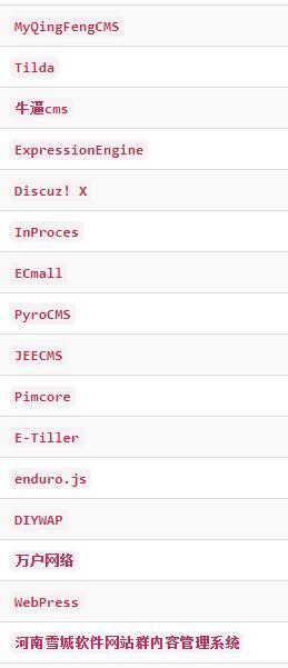 2、dede、wp、帝国、PHPCMS、Drupal、phpyun、米拓等等。