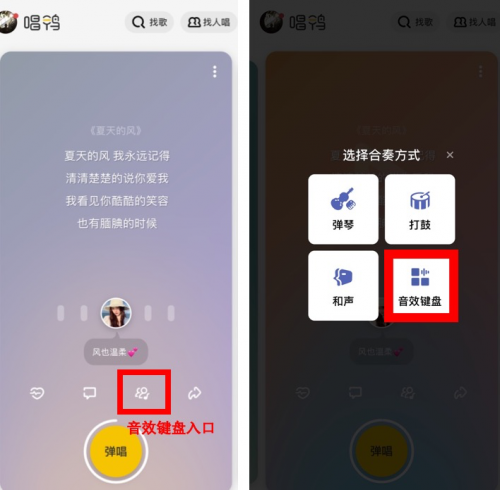 目前,唱鸭已经有吉他、钢琴、尤克里里、管弦乐、琵琶、古筝、B-BOX、放克电钢等几十种乐器或伴奏音。近日,唱鸭还推出了“音效键盘”功能,进一步降低了普通用户玩音乐的门槛。