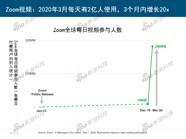 对那些最近有幸在家工作的人而言,说“宅家改变了他们的日常工作”,其实是不够完整的。科技投资者犹记得,Instagram获得1亿月活用户仅用了2年左右时间、以及《堡垒之夜》获得1亿月活用户仅用了18个月左右时间的壮举。但我们从未料想到,一个企业应用会在三个月左右的时间里,日会议参与数从1000万增加到2亿人次。但视频协作平台Zoom做到了。在史册上,Zoom绝对占有一席之位。