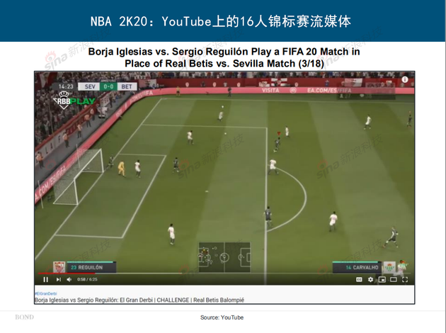 3月18日,国际足联西甲皇家贝蒂斯足球俱乐部和塞维利亚的球员/玩家博尔哈-伊格莱西亚斯(Borja Iglesias)和塞尔吉奥·雷吉龙(Sergio Reguilón)在FIFA 20游戏上打了一场两俱乐部之间已取消的比赛。6万多人在Twitch上围观了直播。