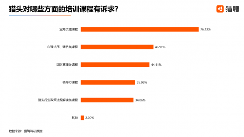 2、猎头诉求最强烈的三大课程:业务技能、心理调试、团队管理