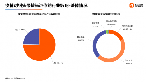 本次调研发现,75.21%的猎头认为本次疫情对其最擅长的行业有较大影响;而24.79%的猎头认为无影响。