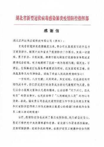 原标题:湖北省疫情防控指挥部发感谢信表扬京东 对其工作给予肯定