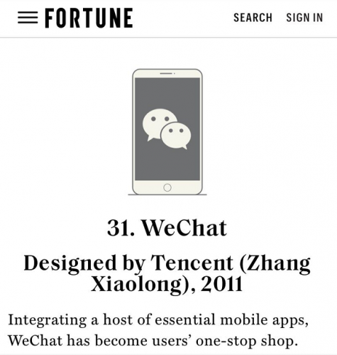 【6cu.com】日前,美国《财富》杂志公布了100个“现代最伟大的设计”排行榜,其中,微信上榜并超越Facebook,成为全球排名最高的社交软件。