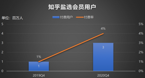 截止2020年12月31日,知乎平均每月盐选会员付费用户达到240万,付费率从2019年Q4的1.8%上升至2020年同期的4%,此外,2019年的留存率为72%。