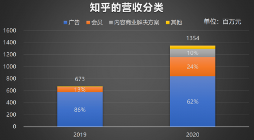 内容平台当今最高效的变现方式就是广告、会员和电商。知乎的招股书告诉我们,目前它倚重的是广告。2020年全年广告收入8.43亿元,同比增速46%,占比从2019年的88%下降至62%。值得注意的是,知乎在2020年首创的商业内容解决方案,是首家规模化推出综合商业内容解决方案的公司,为商家和品牌提供有效的基于内容的线上营销解决方案,将优质的商业内容和营销工具无缝集成到在线内容社区中,从而提高营销效率,让用户从有价值的商业信息中获益。