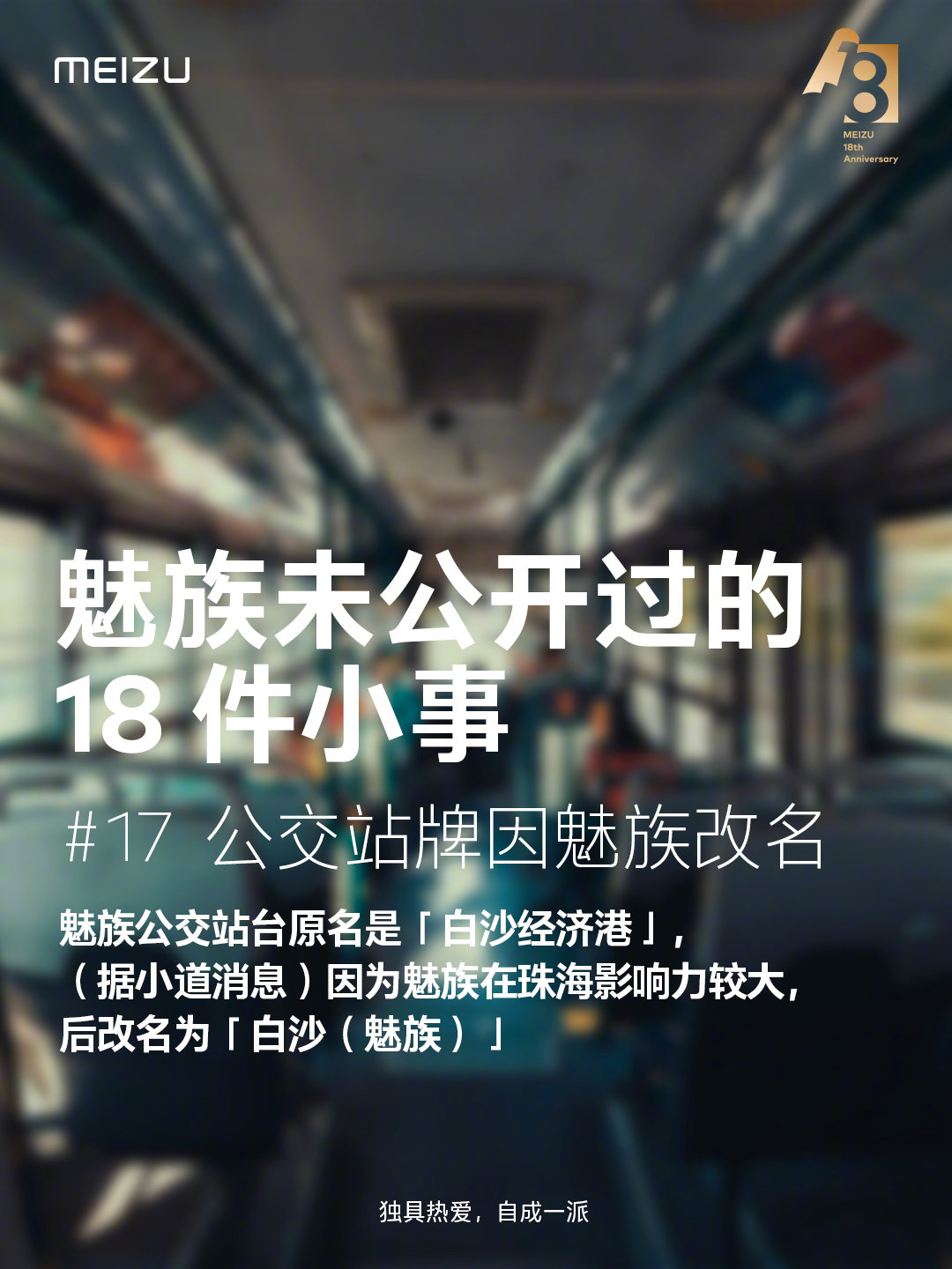 另一件小事,魅族公交站台原名是「白沙经济港」,(据小道消息)因为魅族在珠海影响力较大,后改名为「白沙(魅族)」。
