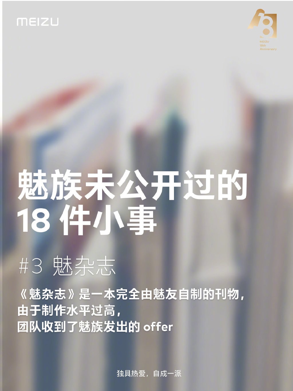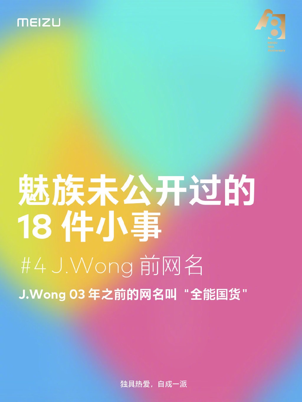 3月14日消息 今年是魅族科技成立 18 周年,魅族今日将在在微博陆续发布魅族未公开过的 18 件小事。截至发稿,魅族已经公布了 1-6 条。