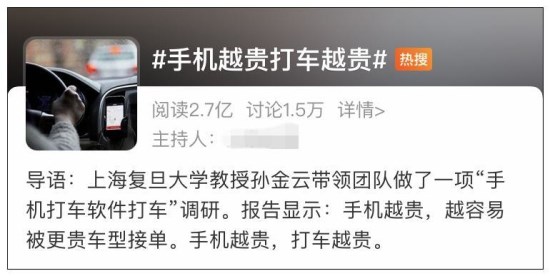 最近,大数据 “杀熟”再次成为网民关注焦点,甚至因为这个问题上了热搜,事件起因是一位复旦大学的教授带领自己的团队,经过 800 多次的测试,使用不同价格不同款式的手机发现了一个非常大的问题。那就是,在使用打车软件的时候,不同价格不同品牌的手机,打的网约车价格也是不一样的。这不得不让人,怀疑是否又是大数据杀熟。