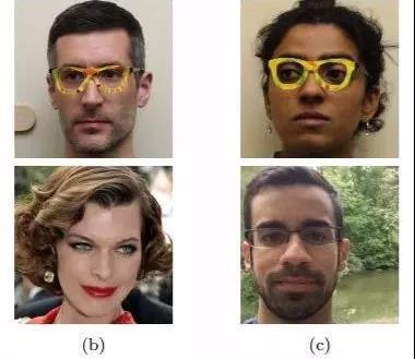 左边男性在佩戴后被识别成了女演员米拉 · 乔沃维奇,右边的女性被识别成一个中东男人。