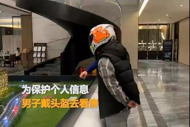 大家还记得去年一男子戴着头盔看楼盘的照片吧。