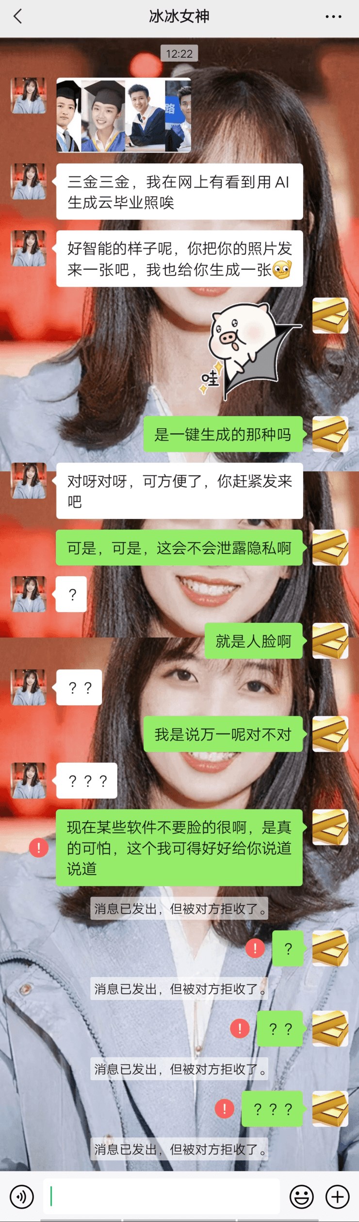 小编的学校也是这样,不过我一直心心念叨的冰冰女神却主动给我要照片了!!!