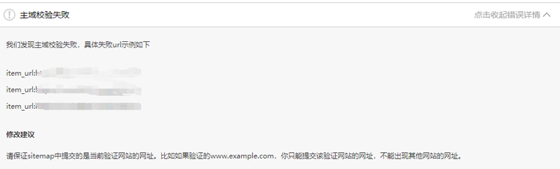 2、是sitamap验证出错吗,查看里面的URL地址是否是验证URL下的域名,同时去百度站长里面,抓取诊断下,看看能否正常抓取,如果能正常抓取,说明百度站长无问题,可以找寻下sitamap里面问题。