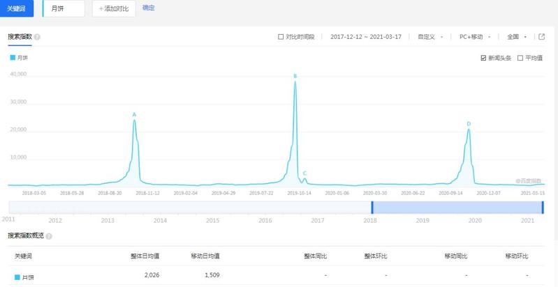 2、月饼这个词是季节性的词,在中秋前搜索会达到顶峰;?