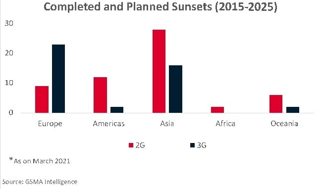 GSMA 研究发现,全球不同地区的运营商在 2G/3G 退网策略上存在不少差异。