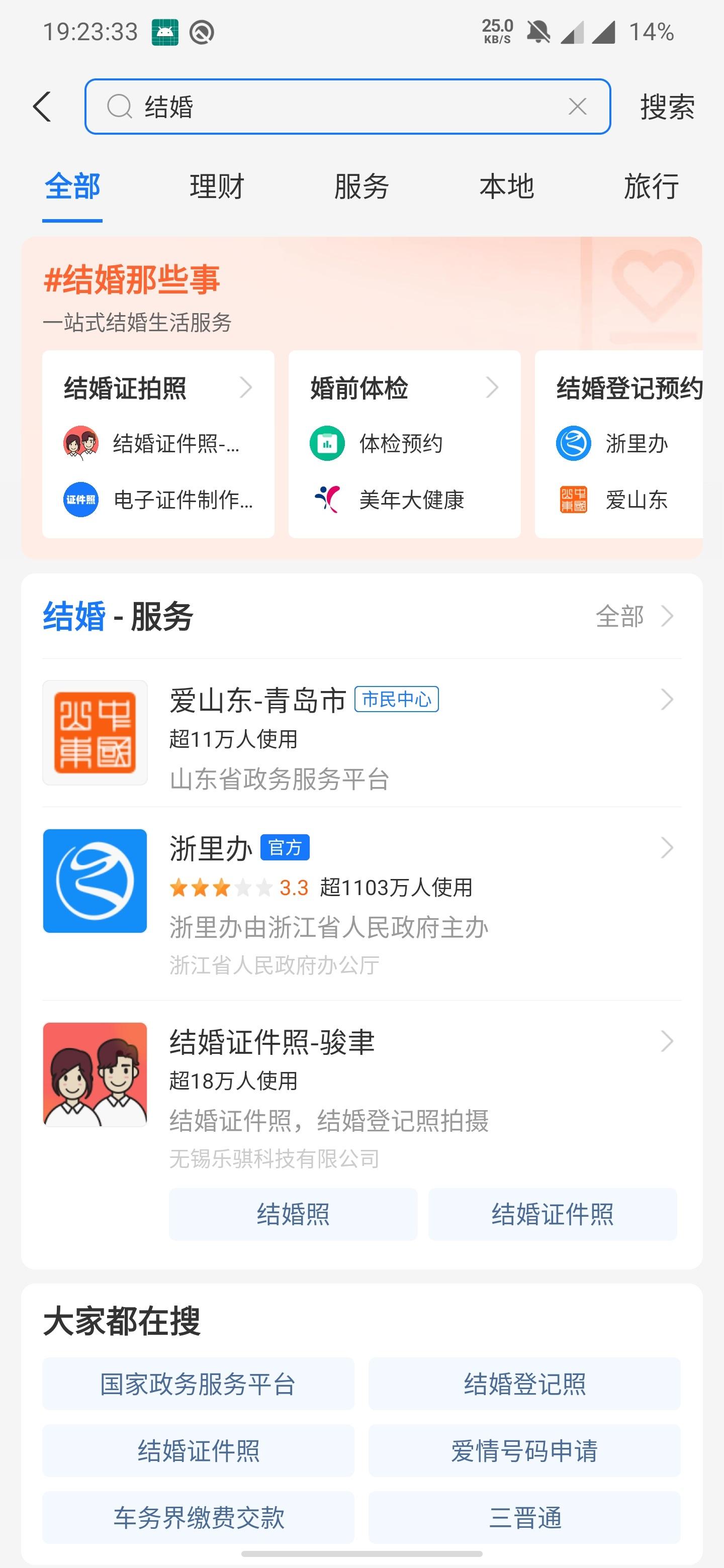 值得一提的是,支付宝此前已上线新服务—— “结婚一条街”,用户在支付宝搜索「结婚」即可,可籍此进行结婚登记预约、婚前体检、拍结婚照等相关服务,号称 “一搜直达,一站配齐,就像是把所有相关服务搬到了同一条街上”。