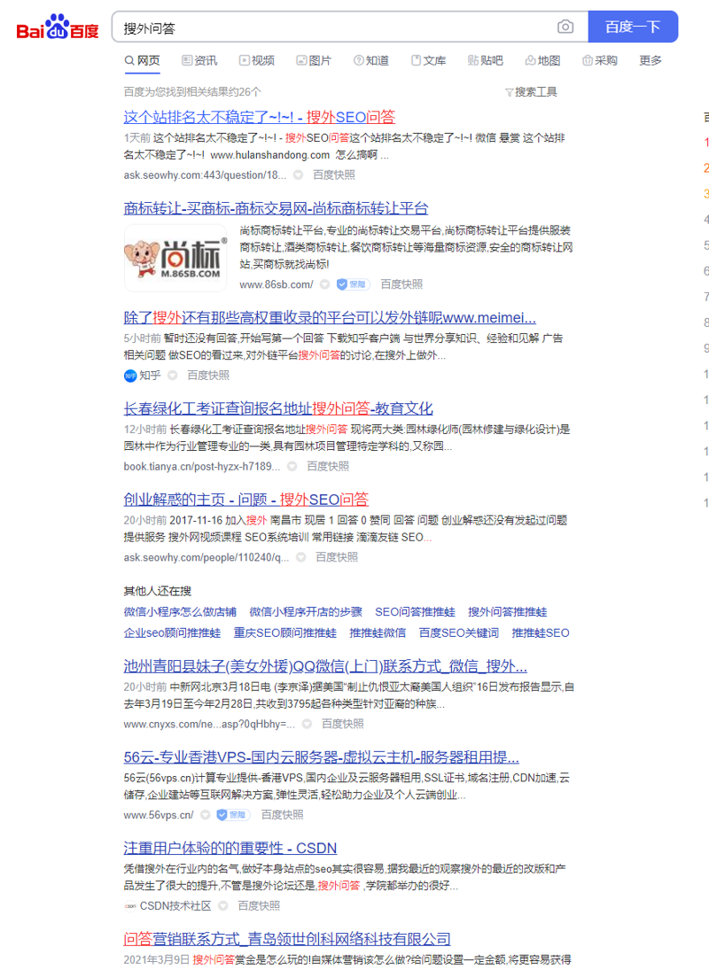 我这里百度也搜不到“搜外论坛”了,360,搜狗反而可以搜索到