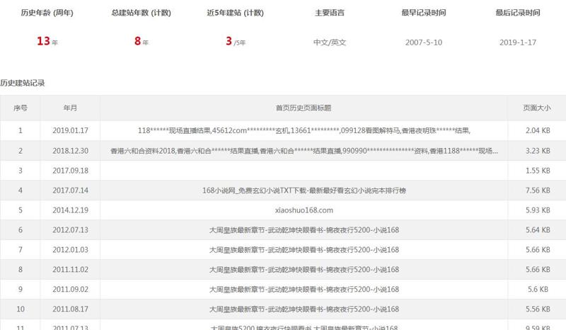 3、域名17年之前有小说建站历史,18、19就是垃圾违规站历史,近期建站历史是垃圾站,这个可能有些影响;?