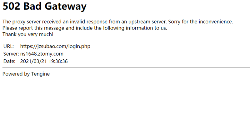 网站502 Server:ns1648.ztomy.com 这个是怎么回事