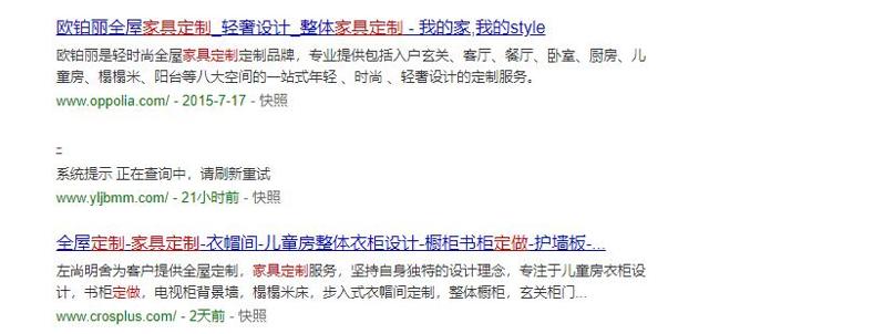 中间没标题得是我的网站,搜狗浏览器,搜索词定制家具,第14位。无语了,快照提交了也没用,哪位大神知道啥情况