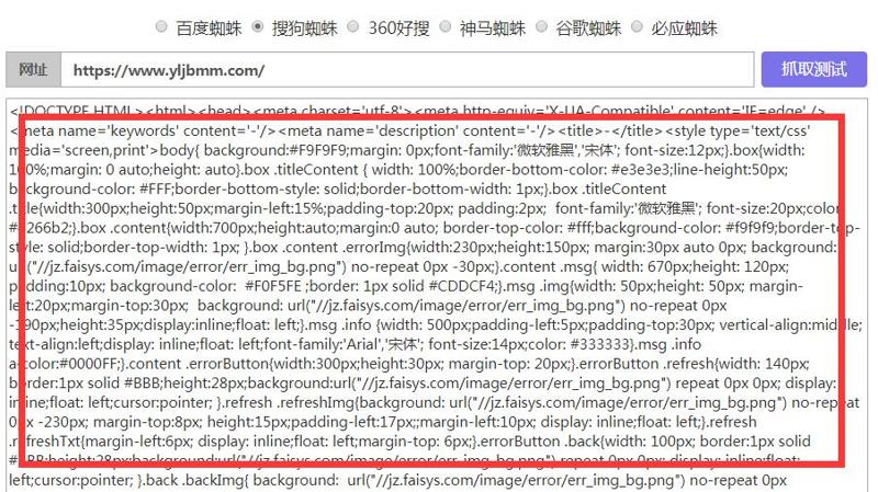 2、如果自身无问题,还得反馈,百度都能正常抓取,但是搜狗蜘蛛模拟抓取,就是抓取不到任何内容,抓取到的源码也跟快照源码一样;