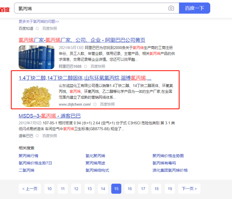 www.zbjtchem.com? ? ?氯丙烯? ?这个关键词 之前在第2页,一个月前掉到第8页,刚才还在第12页,就在刚刚又掉到第15页,这个词是之前技术用快排做上去的,现在掉下来了,怎么能短时间内排名坐上去呢,这个词的指数不高,就是客户天天盯着