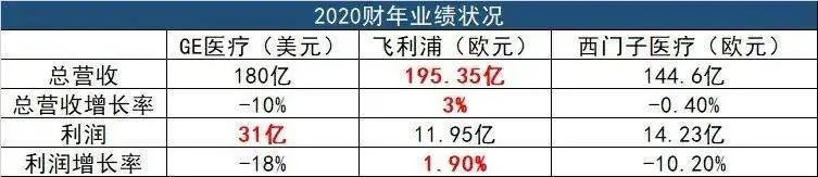 今年 1 月 25 日,飞利浦公布了 2020 年全年财报。数据显示,飞利浦医疗健康部门全年的销售额达到 195.35 亿欧元(约合人民币 1536.25 亿元),同比增长 3%。全年净利润达到 11.95 亿欧元(约合人民币 93.98 亿元),同比增长 1.9%。在医疗健康领域三巨头中,飞利浦的总营收以及增长率都很突出。