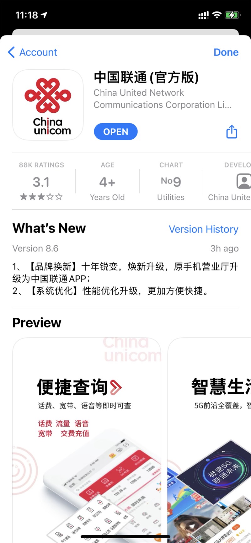 联通 iOS 版手机营业厅 App 已迎来升级,UI 和功能并未大改,版本号由 8.2 突变到 8.6。