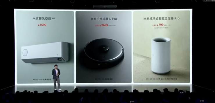 值得一提的是,在小米官宣造车的同一场发布会,小米还发布了三款智能家居新品 —— 米家新风空调、米家扫拖机器人 Pro、米家纯净式智能加湿器 Pro,定价分别为 3599 元、2699 元、 899 元。