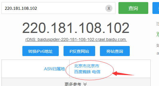 就是这种情况IP段是百度蜘蛛,但是他是北京市北京市,百度蜘蛛电信,我看有的视频说这种是用第三方软件刷出来的,百度不承认