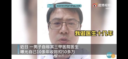 医生开药方,收受回扣已经不是什么秘密,都快成医院的明规则了,我相信这名医生说的都是真话,也是医院现状。希望相关部门可以彻查。现在看病难,看病贵,已非常严重,药品价格里已经包含了医生回扣,医院的公关费用,这些费用都是由患者买单,由于以上原因,医保报销比例再高,患者看病的成本也降不下来。
